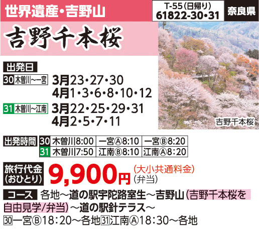 ――★吉野山(吉野千本桜を自由見学/弁当/約140分)―