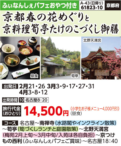 京都春の花めぐりと京料理筍亭たけのこづくし御膳