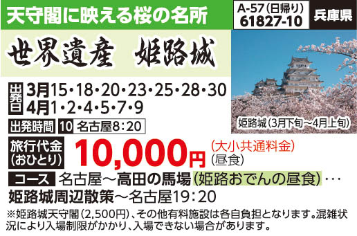 ※姫路城天守閣、その他有料施設は各自負担となります。