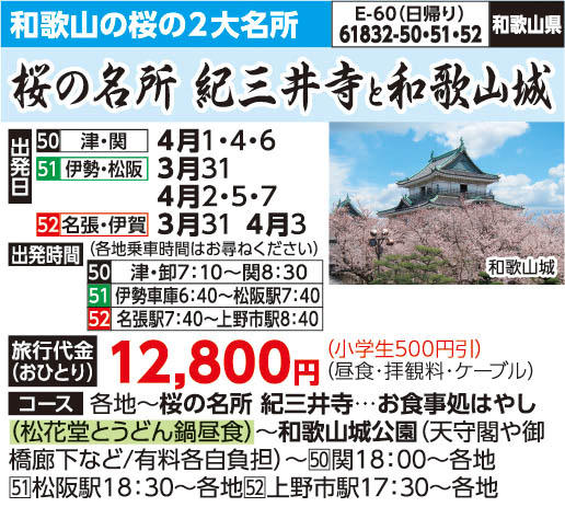 ―――★桜の名所 紀三井寺(参拝)・・・★お食事処はやし(松花堂とうどん鍋昼食)