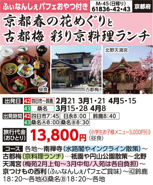 京都春の花めぐりと古都梅 彩り京料理ランチ