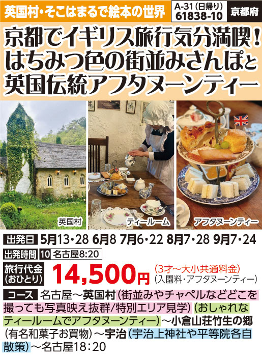 ※英国村は石畳や砂利道が多くあります。歩きやすい靴でご参加ください。