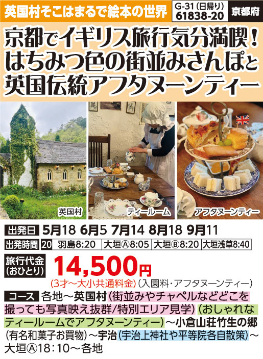 ※英国村は石畳や砂利道が多くあります。歩きやすい靴でご参加ください。