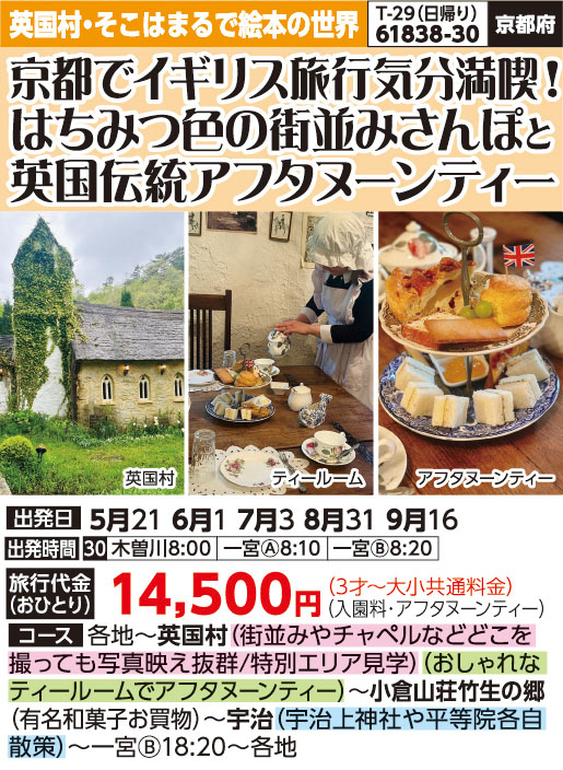 ※英国村は石畳や砂利道が多くあります。歩きやすい靴でご参加ください。