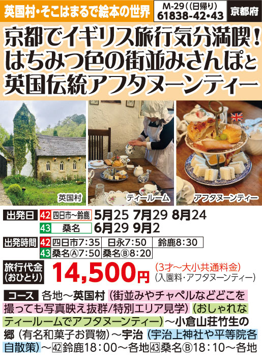 61838-43 日帰りバスの旅 14,500円 ~ 14,500円 2026/06/29 ~ 2026/09/02
