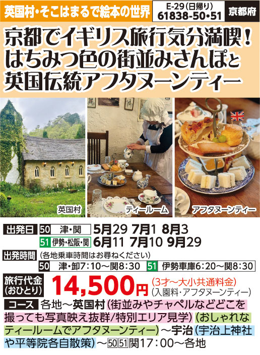 ※英国村は石畳や砂利道が多くあります。歩きやすい靴でご参加ください。