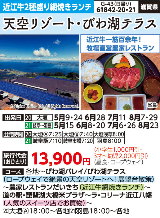 天空リゾート びわ湖テラスと近江牛2種盛り網焼きランチ