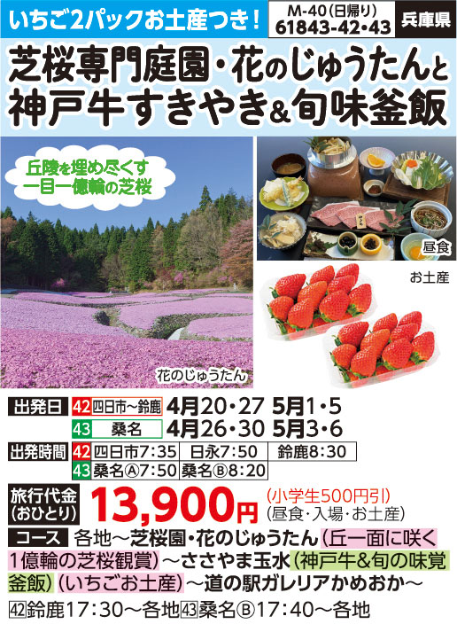 芝桜・花のじゅうたんと神戸牛すきやき&旬味釜飯