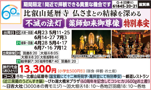 61845-21 日帰りバスの旅 13,300円 ~ 13,300円 2026/04/28 ~ 2026/07/12