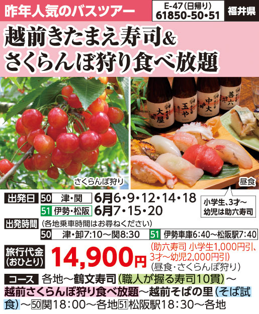越前きたまえ寿司&さくらんぼ狩り食べ放題