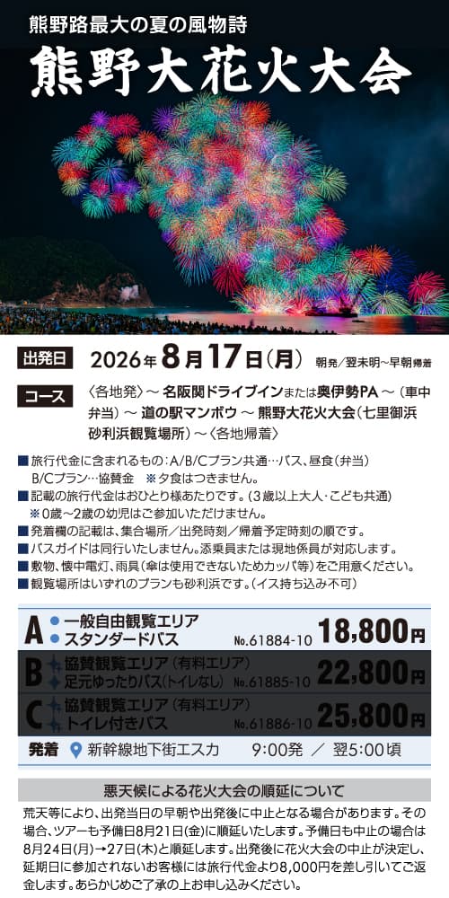 61884-10 日帰りバスの旅 18,800円 ~ 18,800円 2026/08/17 ~ 2026/08/17