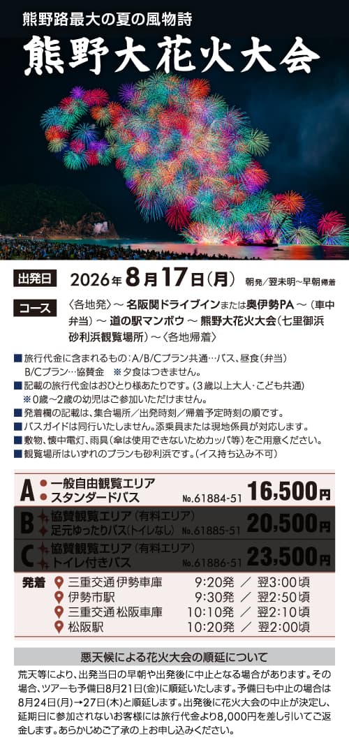 | 出発日 | 2026/08/17 ~ 2026/08/17 |
