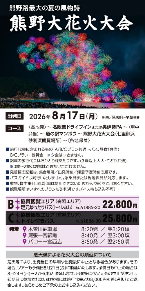 熊野大花火大会<B:協賛観覧エリア・足元ゆったりバス>