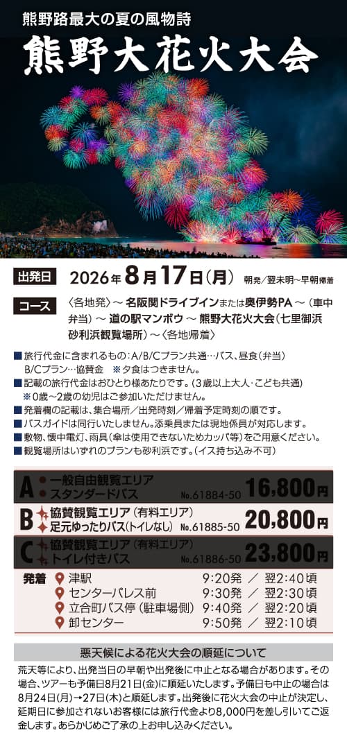 熊野大花火大会<B:協賛観覧エリア・足元ゆったりバス>