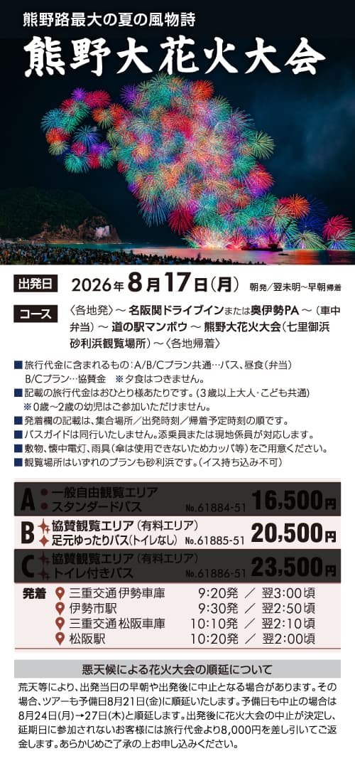熊野大花火大会<B:協賛観覧エリア・足元ゆったりバス>
