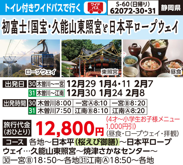 62072-30 日帰りバスの旅 12,800円 ~ 12,800円 2025/12/29 ~ 2026/02/07