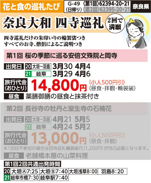 62394-21 日帰りバスの旅 14,800円 ~ 14,800円 2026/03/29 ~ 2026/04/06