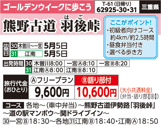 | 出発日 | 2026/05/05 ~ 2026/05/05 |