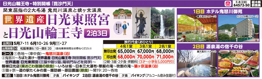 ★世界遺産・日光山輪王寺(特別御開帳毘沙門天)と世界遺産・日光東照宮(三猿・