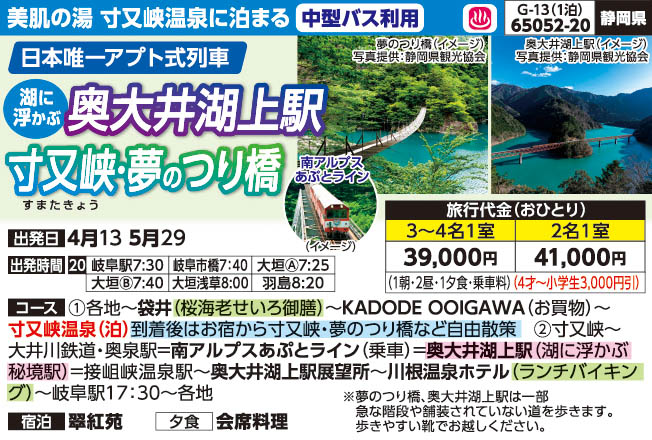 奥大井湖上駅と寸又峡・夢のつり橋<中型バス利用>