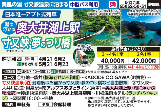 奥大井湖上駅と寸又峡・夢のつり橋<中型バス利用>