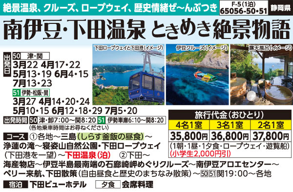 ※下田ロープウェイが運休の場合は、下田海中水族館へご案内します(当日のご案内)