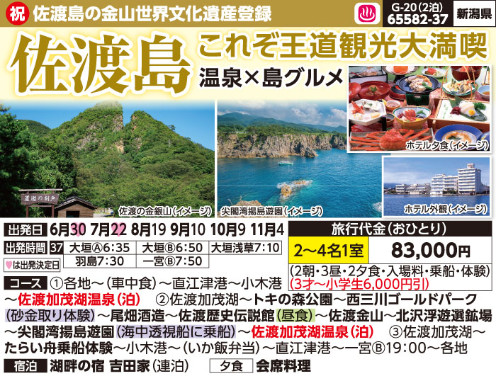 【2泊3日】世界文化遺産 佐渡島 王道観光