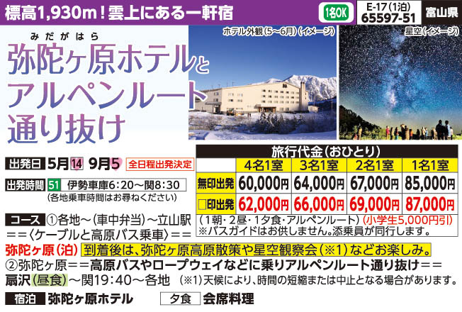 催行決定 62,000円~87,000円 予約 乗車場所一覧 |