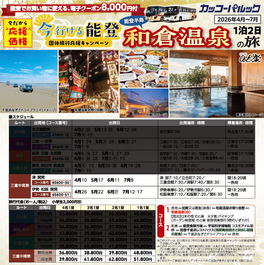 今行ける能登 団体旅行応援キャンペーン 和倉温泉