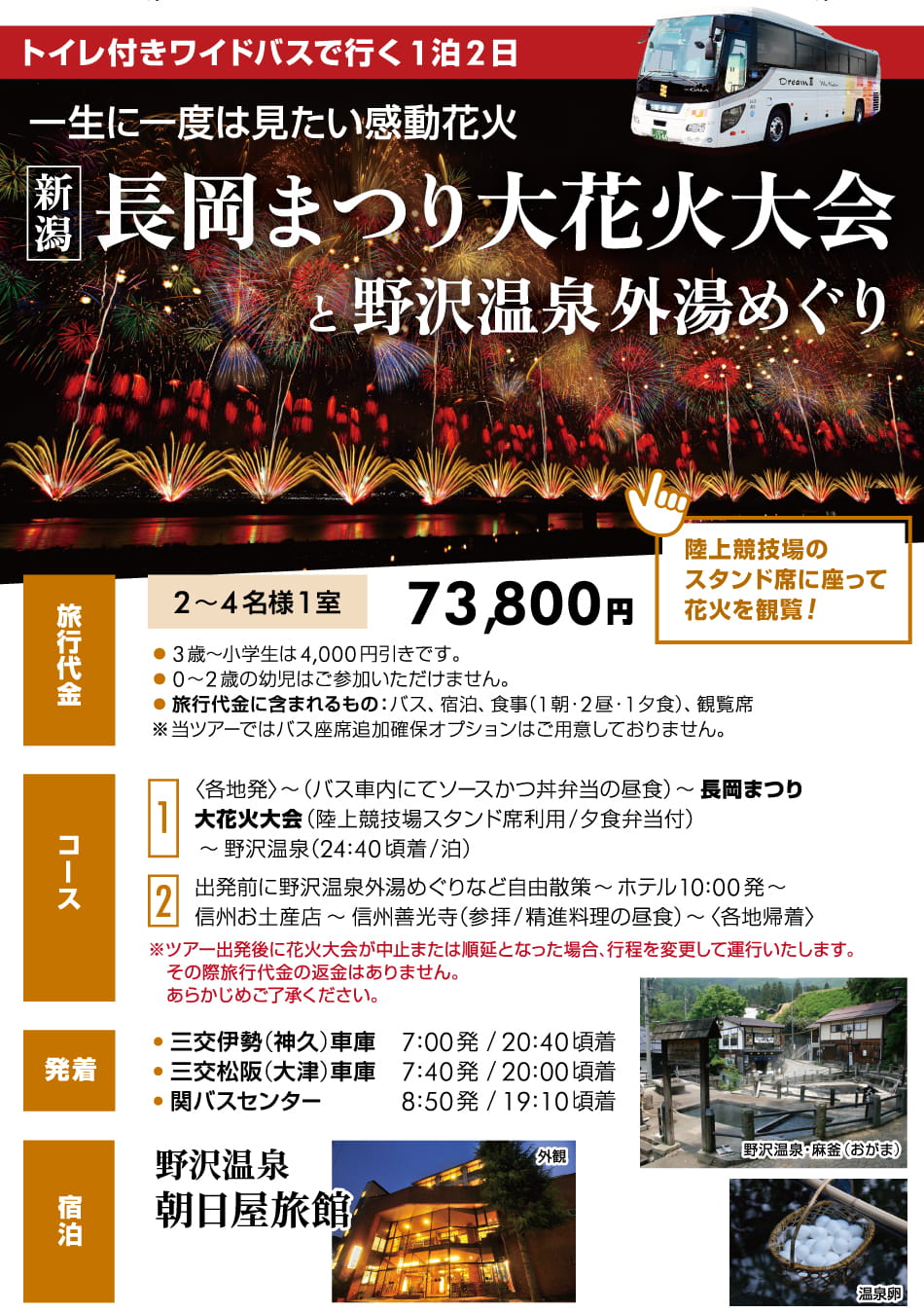――――――★長岡まつり大花火大会――――――野沢温泉(泊/24:40頃着予定)