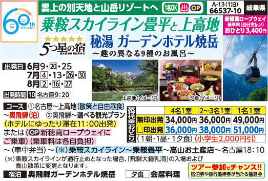 | 66537-10 | 宿泊バスの旅 | 34,000円 ~ 51,000円 | 2026/06/09 ~ 2026/08/27 |