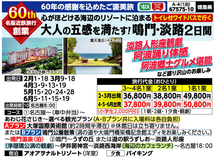 トイレ付ワイドバスで行く鳴門・淡路2日間