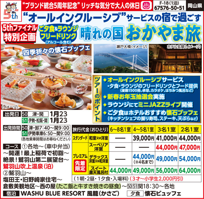 【宿泊:WASHU BLUE RESORT風籠(かさご) TEL:086-479-9500】