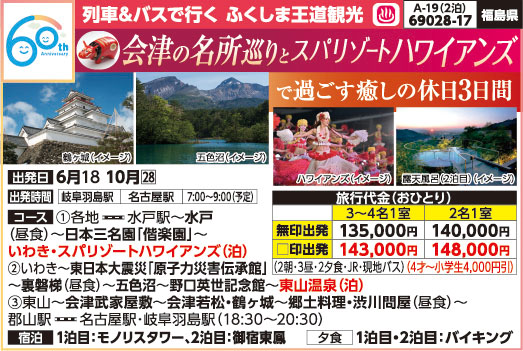 【2泊3日】 会津の名所巡りとスパリゾートハワイアンズ
