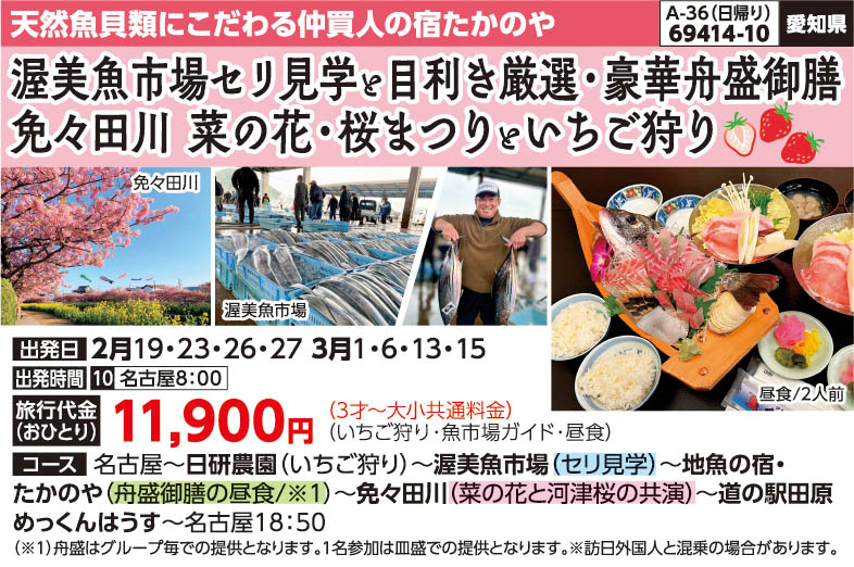渥美魚市場セリ見学と目利き厳選・豪華舟盛御膳