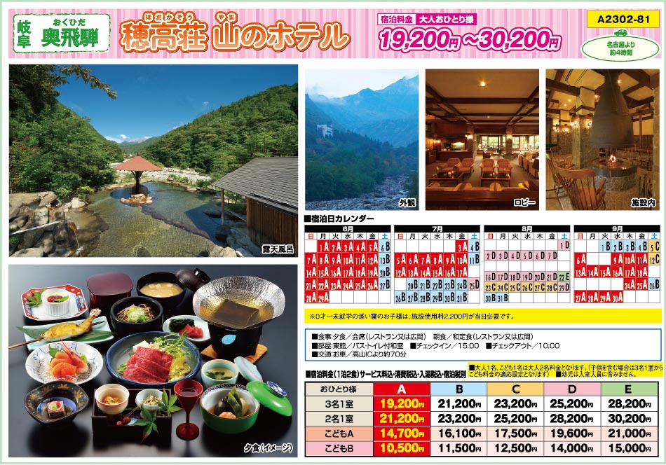 「穂高荘 山のホテル」はWEBからはご予約できません。お近くの旅行センターにお問い合わせいただきますようお願い申し上げます。